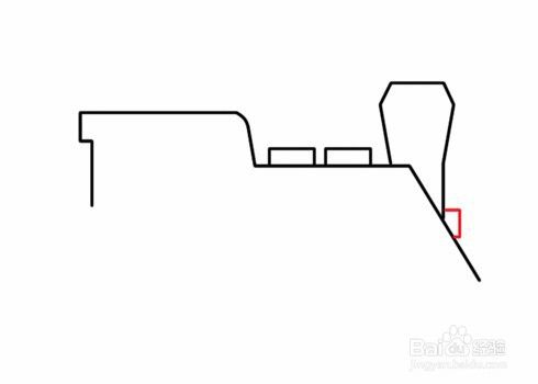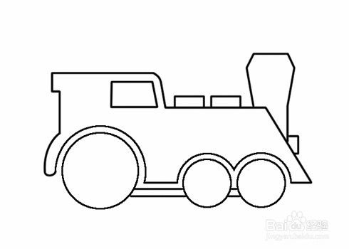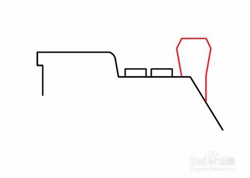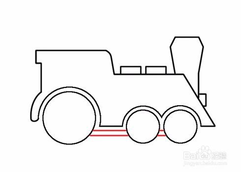 左边是直线右边是斜线与横线构成的图形。这样就完成了火车头了。