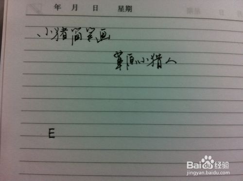 取出一张白纸, 首先写一个大写英文字母"E"来代表小猪的嘴巴, 在画的过程中可以教孩子一起念.