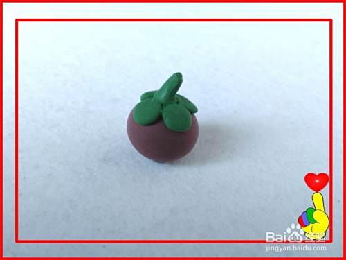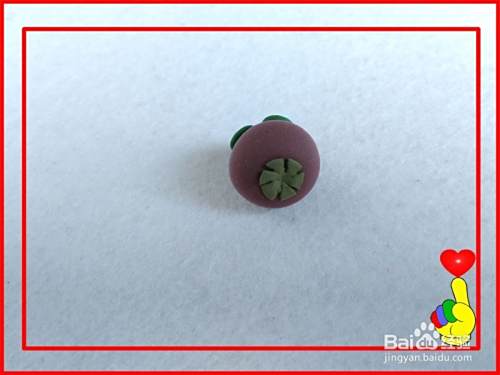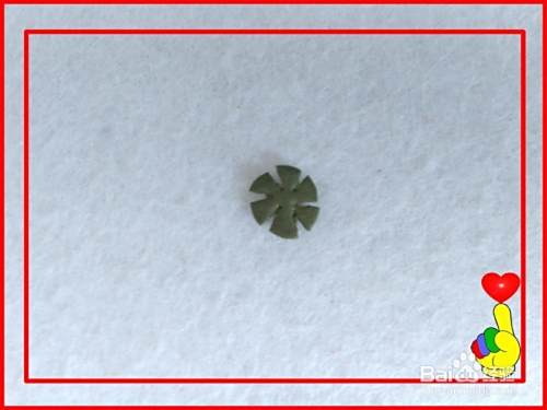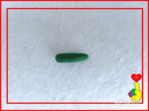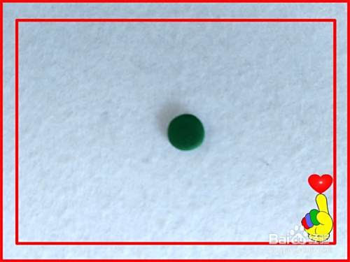 再取深绿色彩泥适量,滚搓成小圆球,压成小圆片。