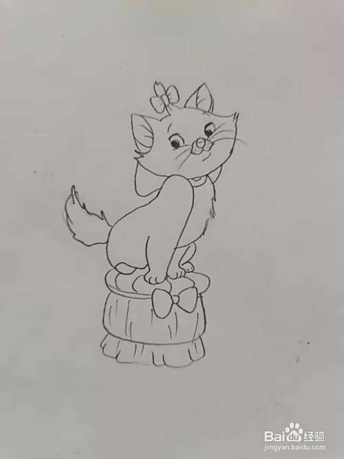 最后,画一个凳子做修饰,卡通波斯猫简笔画,就完成了。