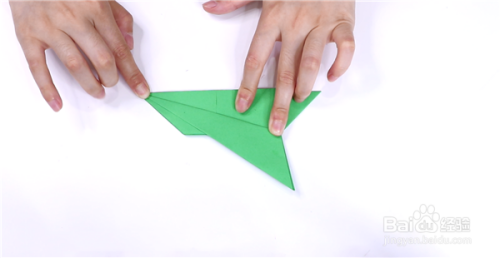 最后再将折出的三角边缘折叠出一个痕迹,这样一个手工纸飞机就完成啦。
