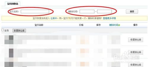 回收站里面的宝贝比较多的话,就可以输入宝贝的名称,找到你误删的那个宝贝