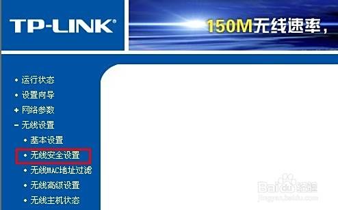 然后在左侧导航里面依次点击:无线设置 - 无线安全设置!!