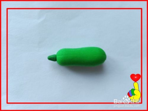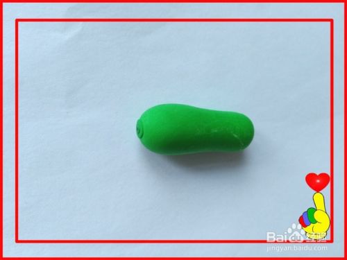 取深绿色彩泥适量,制作出“笋瓜”柄的形状。
