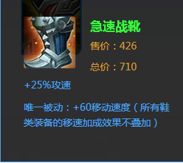 第二件装备选择极速战靴,增加攻击速度和移动速度