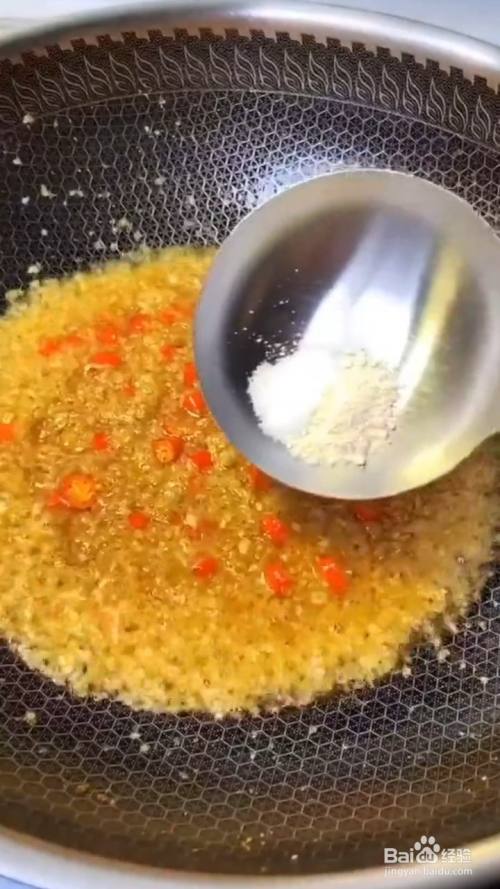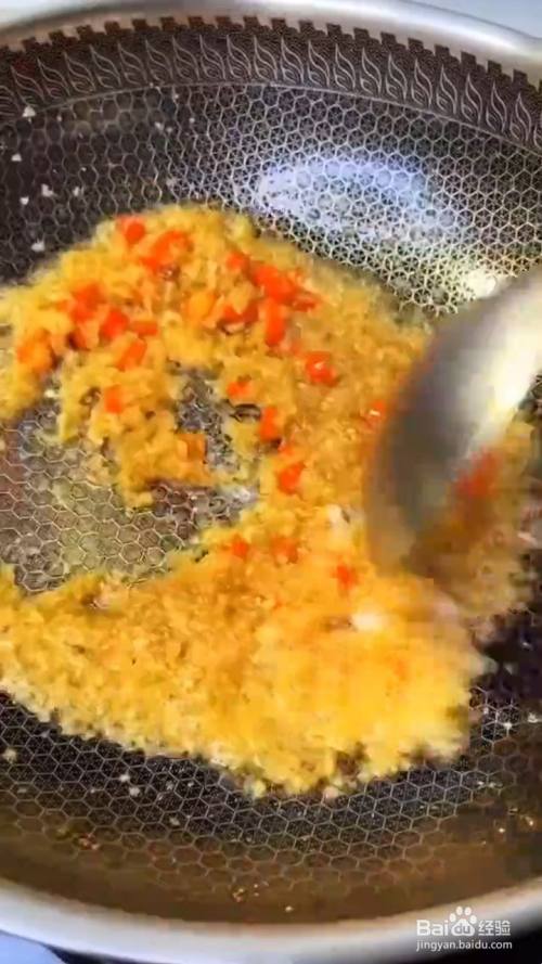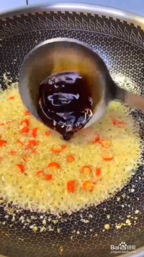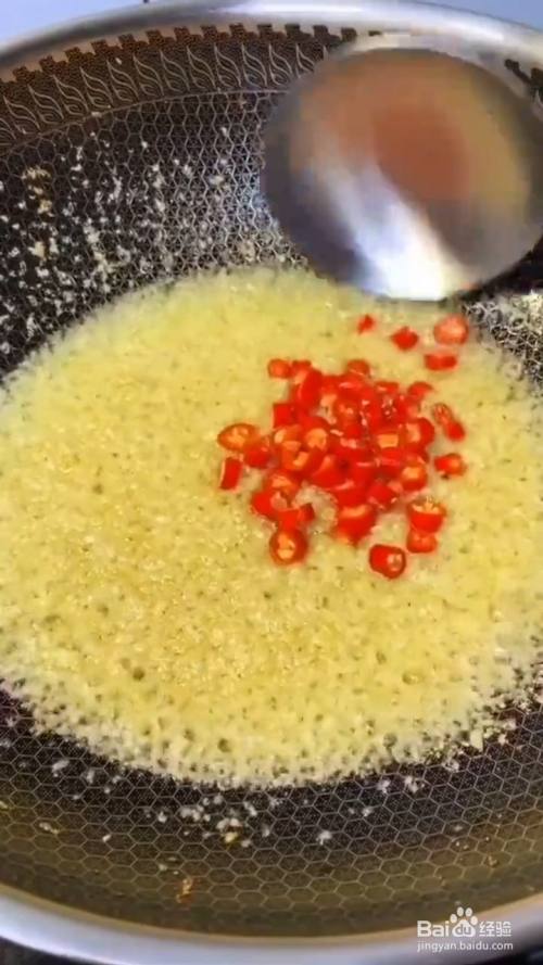 锅中烧油 放入蒜末炒香 再放入小米辣翻炒;