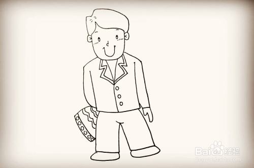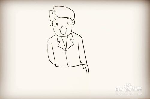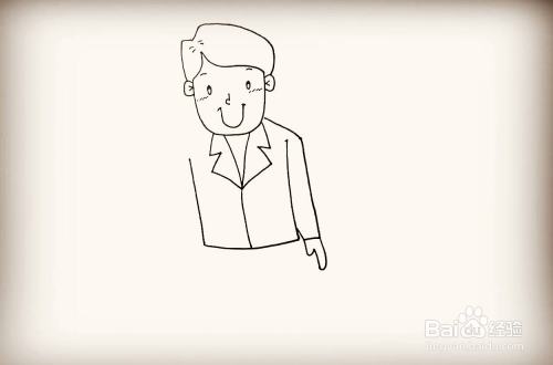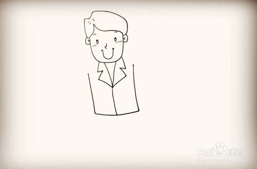 在多画一遍衣服的衣领,画上纽扣就画好了。