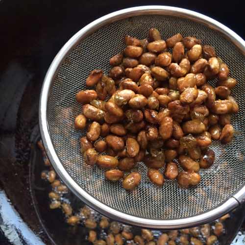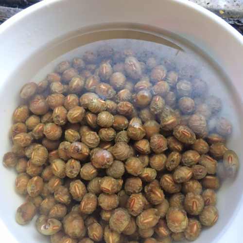 2先用清水泡2两黄豆(半天时间)然后滴干水份。