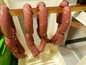 灌入肠衣,每10厘米用棉线扎一节,并用针扎肠体数个小孔放气。凉12小时以上。