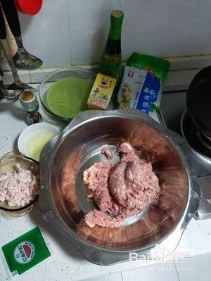 将所有的调料和食材放在一个盆子中混合均匀,朝一个方向进行搅拌。