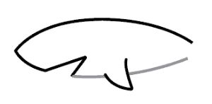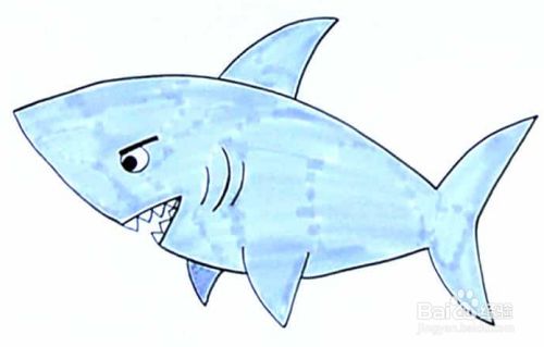 接着,画出鲨鱼上边的鱼鳍、眼睛和尾巴。