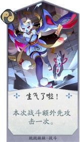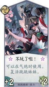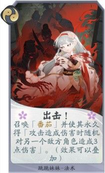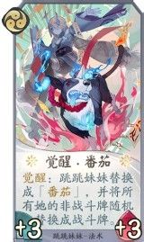 卡牌作用:高爆发战斗牌, 参考妖刀姬妖刀万华效果,优先攻击一直是很赚的词条,尤其是高力量值单位,而且番茄在觉醒后经常可以达到6.7点力量值,额外连击还会触发两次出击的效果,当然还是不建议在未觉醒状态使用,一来鬼火额外消耗,其次跳跳妹妹在我们没有利用其他式神成长跳跳妹妹时,跳跳妹妹的3点力量值在二勾玉回合不太够看。