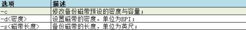 -d<密度>设置磁带的密度。单位为BPI(Bits Per Inch);