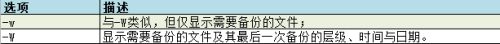 -W显示需要备份的文件及其最后一次备份的层级、时间与日期。