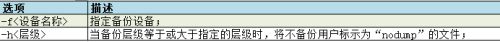 -h<层级>当备份层级等于或大于指定的层级时,将不备份用户标示为“nodump”的文件;