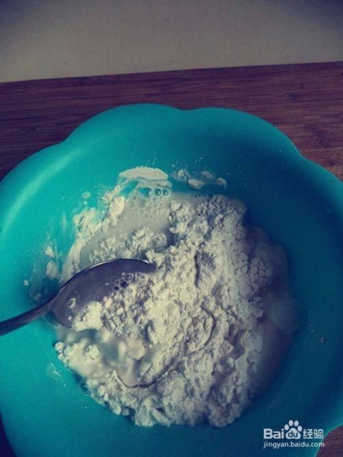 1.先将糯米粉放入干净的玻璃碗中,加适量的温水放好搅匀。