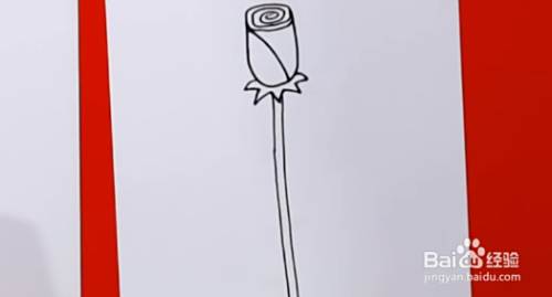 5,下面再画两个长竖杠为玫瑰花的茎。