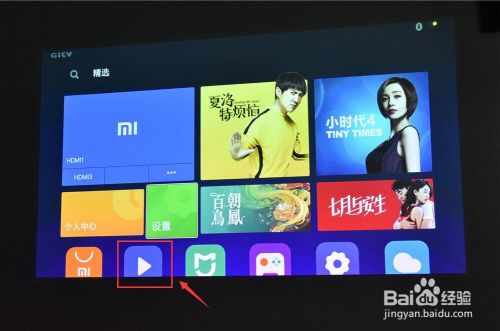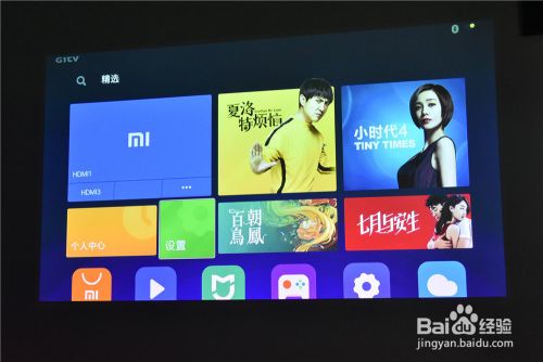 连接投影电源,找到一面白墙之后,作为投影界面,启动打开。因为该投影使用的是小米MIUI操作系统,未自带电视直播软件,需要借助第三方的直播软件。