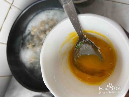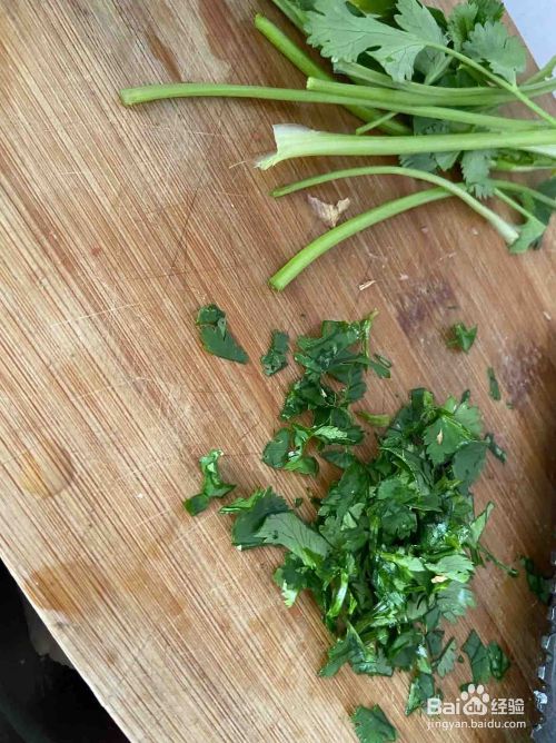 放入香菜叶、蛋清、1.5g盐搅拌。(不爱吃香菜的,放入绿色葱花,美观还去腥味)