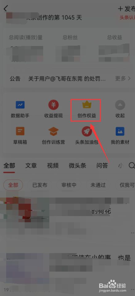 点击【创作权益】图标。