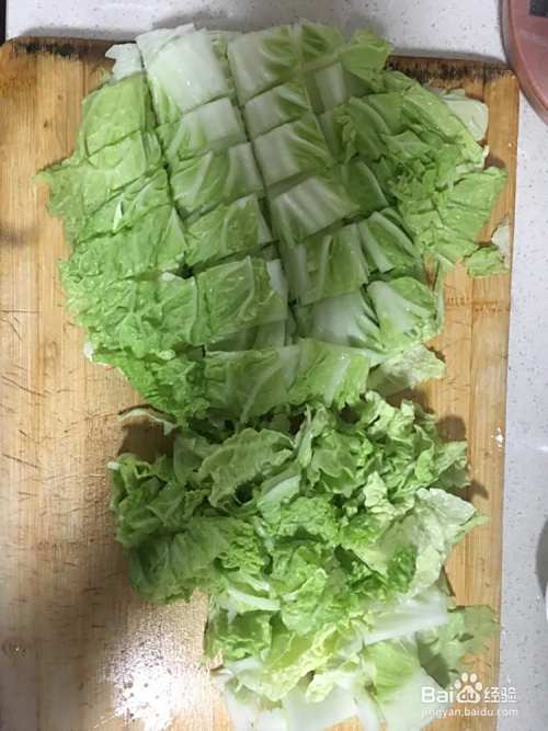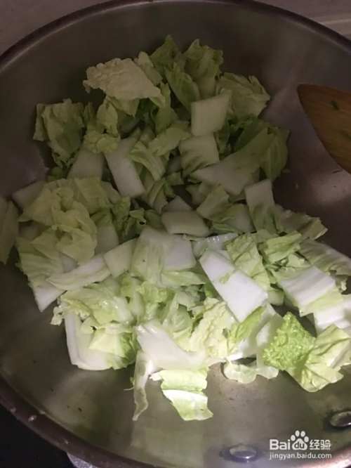 起锅倒油,油热后加葱爆香。倒入白菜,翻炒。