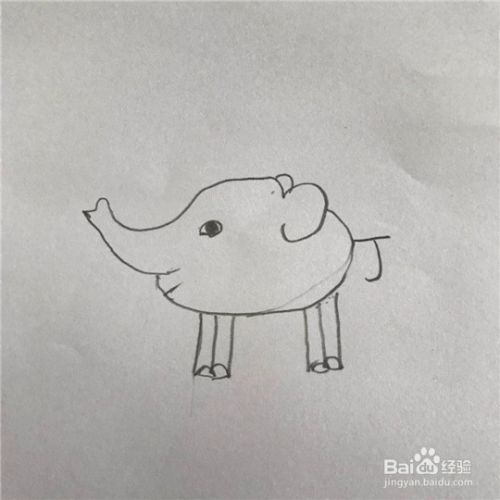 沿着大象的耳朵画出大象的鼻子,在画鼻子的时候要注意弧度,见下图