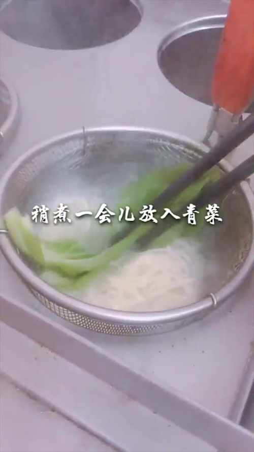5稍煮一会儿放入青菜,煮好后倒入碗中。
