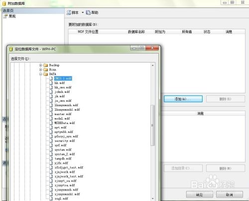 第四步:附加数据库,因为数据日志已经不存在,附加的时候,删除日志路径。
