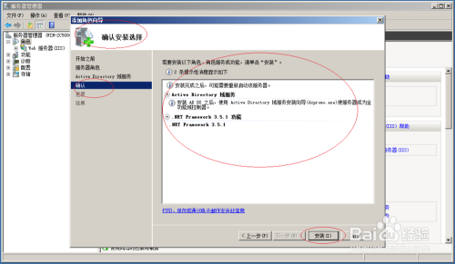 显示确认安装选择信息,点击"安装"按钮。
