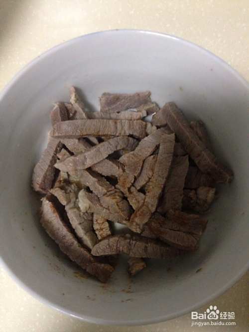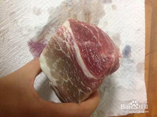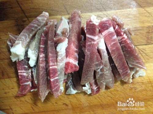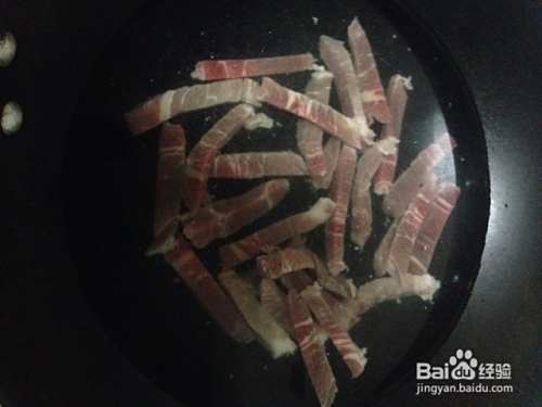 我用的是农家火腿肉,有稍微腌制过的,放在冰箱冷冻,所以拿出来先要稍微解冻下,买的新鲜肉这步可以省略