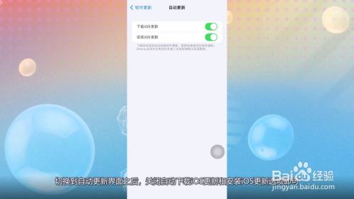 切换到自动更新界面之后,关闭自动下载iOS更新和安装iOS更新选项即可,关闭之后手机就不会自动更新了。