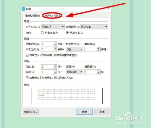 在弹出的“段落”对话框中,有两个选项卡,我们单击“换行和翻页”