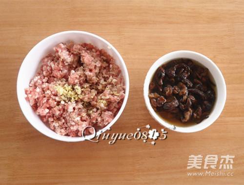 2肉馅放入酱油、料酒、橄榄油、生姜末腌制;榛蘑温水泡发洗净(若是新鲜的榛蘑就焯一下水)
