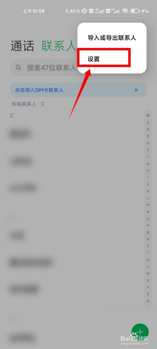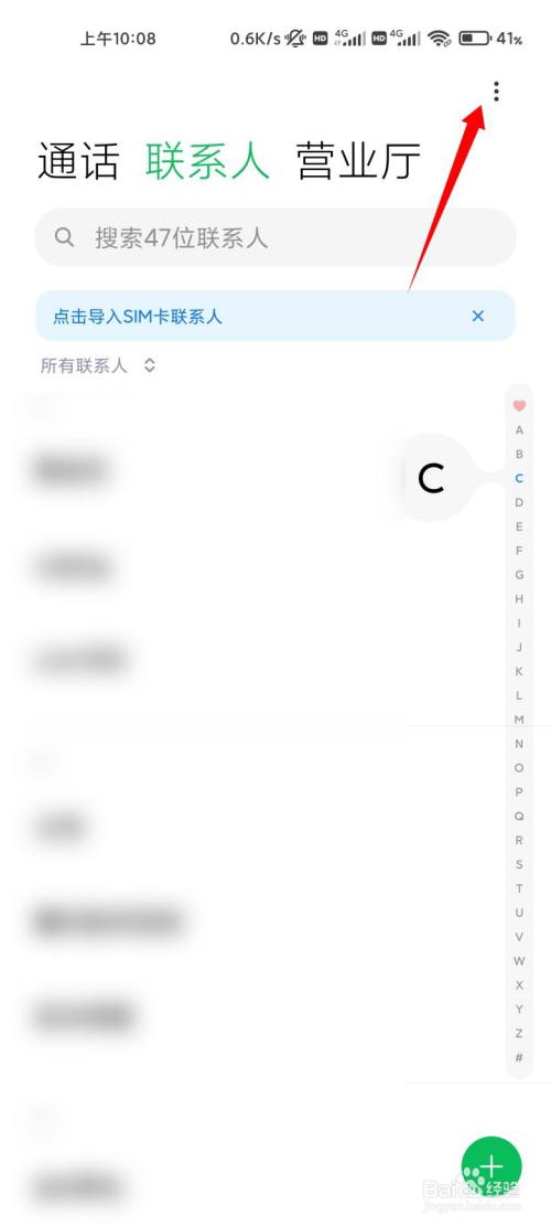 打开小米手机的联系人APP,点击右上角的3点图标。