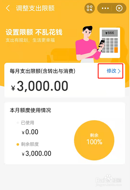 3、最后在如下页面中点击修改的即可更改每月使用限额。