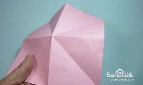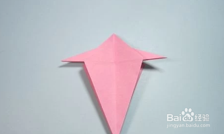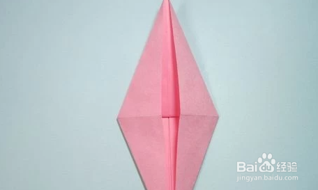 将正面和背面下侧的两个角分别翻折上去,与上边的角对齐。然后按照步骤10、步骤11、步骤12、步骤13的操作方法,得到这样的形状。