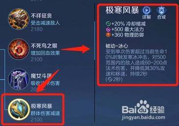 即可看到极寒风暴可以在英雄受到单词伤害超过当前生命10%时触发寒冰冲击,对500范围内的敌人造成伤害