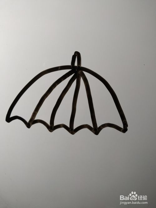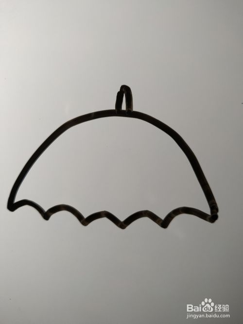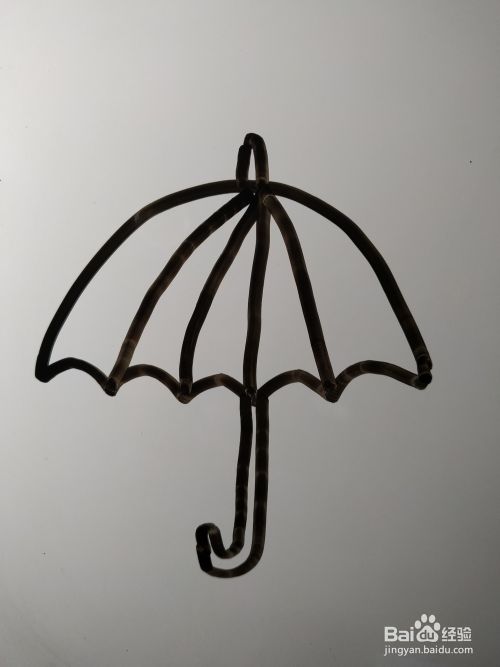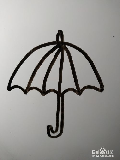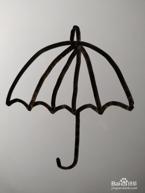 在这条钩形的左侧画出另外一个弯曲幅度完全一致的钩形。伞的简笔画就完成了。