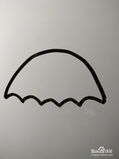 从小凸起的下端向波浪线的最下端画一些小弧线。将伞面分隔成若干部分。