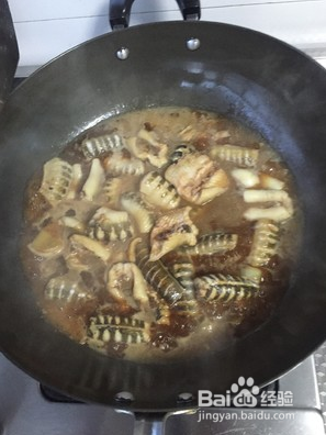 加入温水或开水漠过鱼,添加料酒和生抽加多多李锦记红烧汁,少量盐和糖,盖上盖,调小火煮约二十分钟