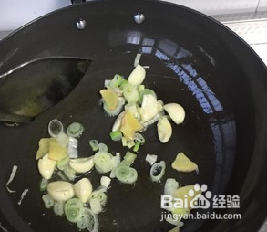 热锅加油烧热后放入葱花姜蒜炒出香味