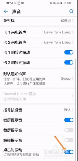 4、最后点击“点击时振动”右边的开关,如图所示,即设置成功。