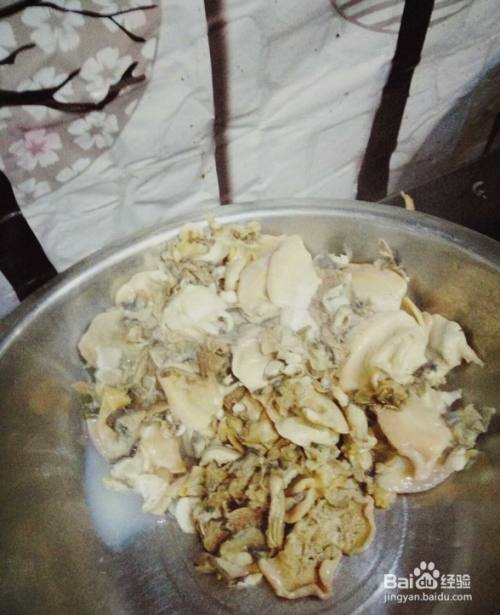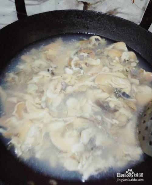 剥开河蚌,取出肉,剔除腮部肠子,用大量食盐,白酒清洗三道四遍