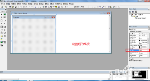 点击新建一个工程 ,找到窗体属性设置,更改”Height“属性。