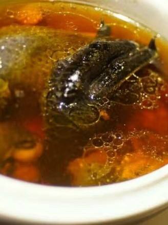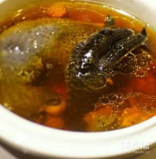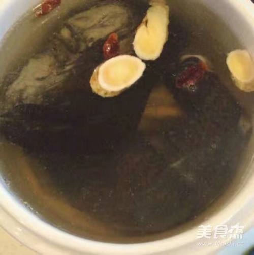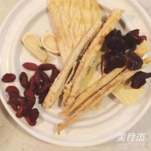 把焯过水的鸡块和药材、适量的开水加入炖盅内,炖煮2小时,喝用时放入盐调匀即可以喝了