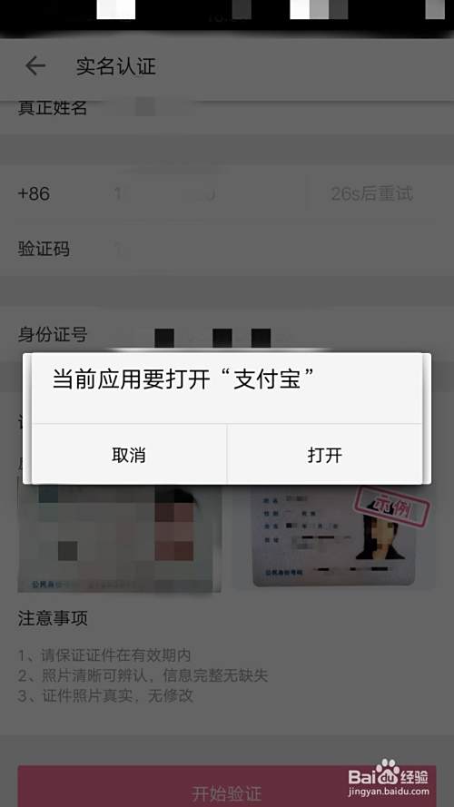 接着点击支付宝快捷认证,输入个人相关信息并上传身份证,点击开始验证。
