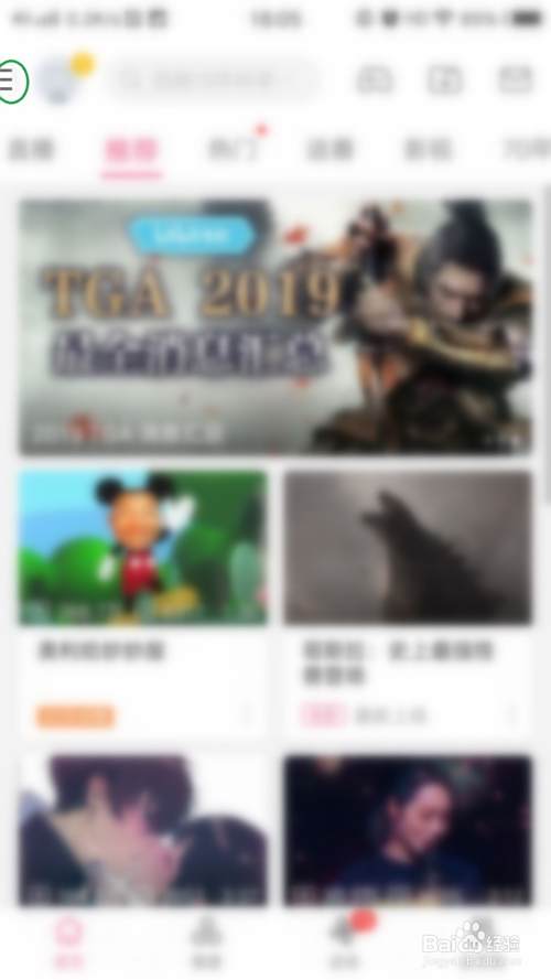 打开哔哩哔哩客户端,点击左上侧的符号。