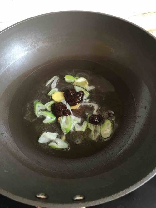 油热后放葱姜蒜,黄豆酱爆香