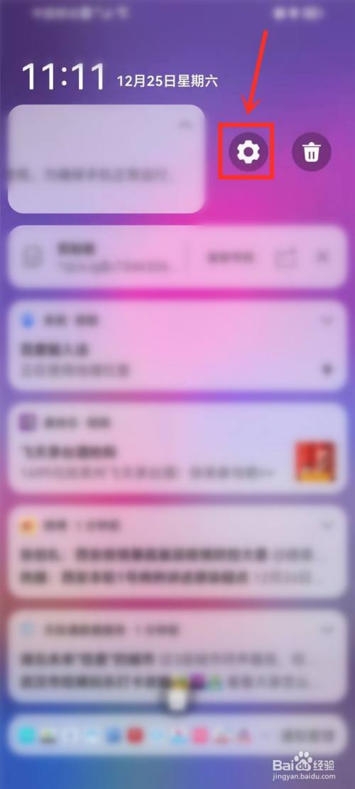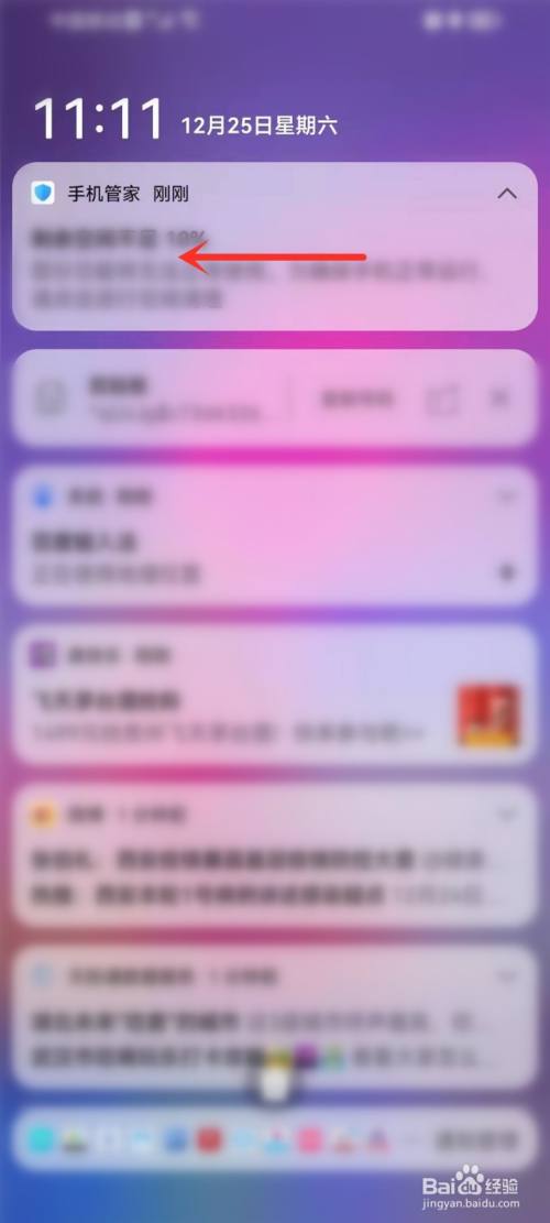 找到手机管家通知,向左滑动卡片。