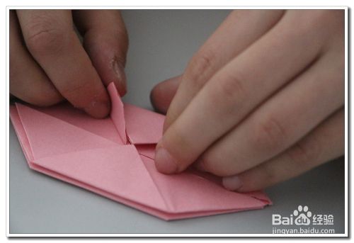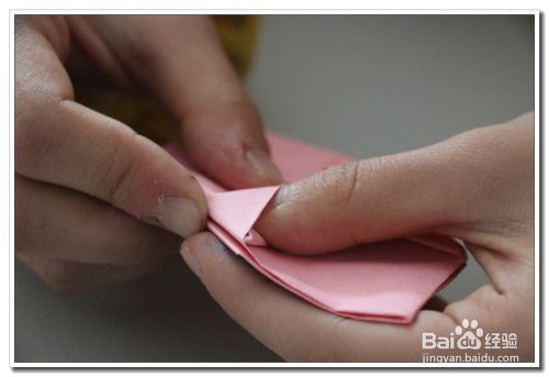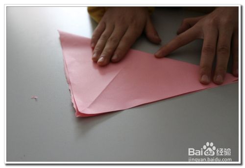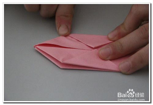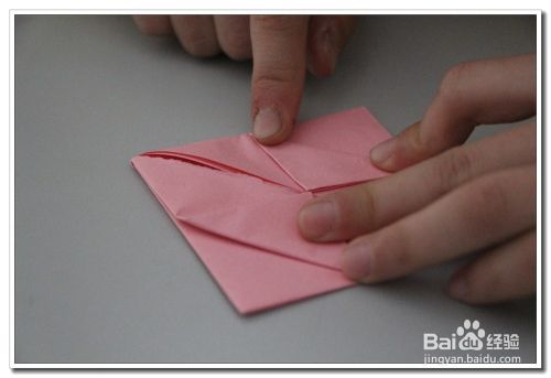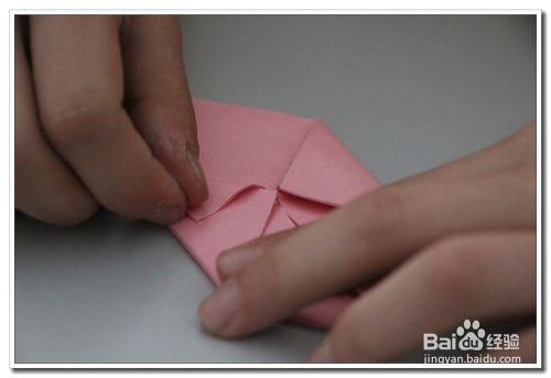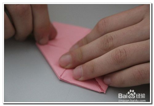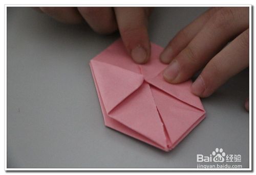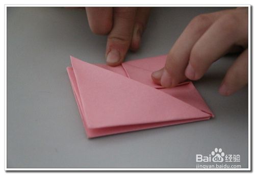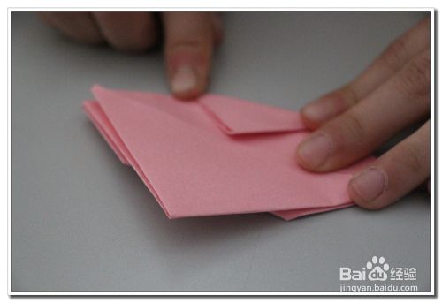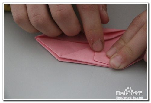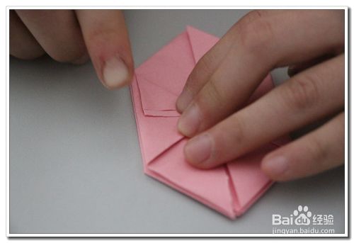 6、如图所示,对三次折成的小角,再次朝内折叠。